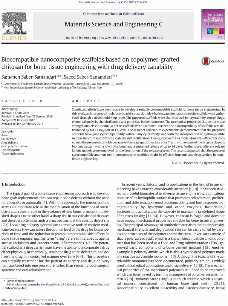 Biocompatible nanocomposite scaffolds based on copolymer-grafted chitosan for bone tissue engineering with drug delivery capability